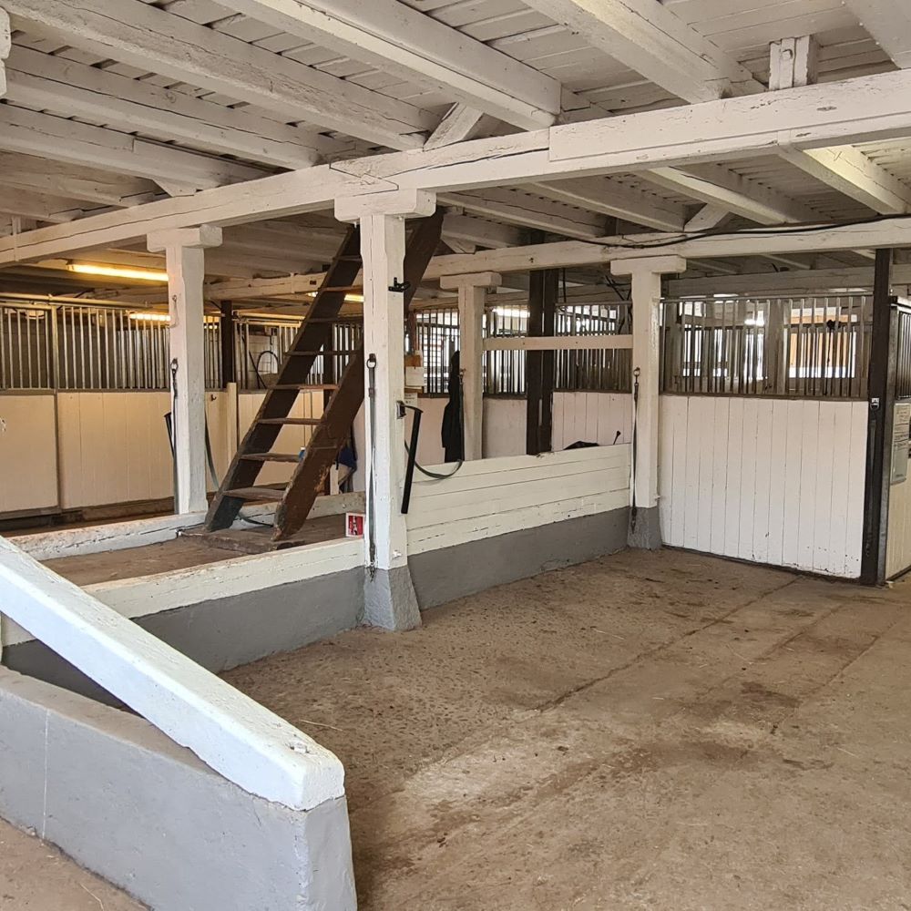 Stallet har totalt 18 boxar uppdelat i två stalldelar. Det finns ett fikarum med kyl & frys, micro, vattenkokare, kaffebryggare mm. Till varje box hör ett skåp där man kan förvara sina saker och det finns även en stor loge med gott om utrymme för förvaring.