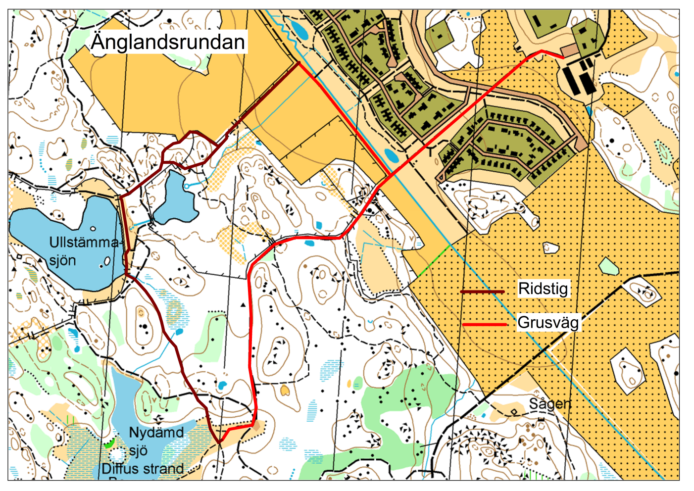 Längd ca. 3 km. Ridtid ca 40 min. En bra skritt-runda i fin skogsmark. Rundan har också kortare stäckor grusväg för trav- eller gallopp.